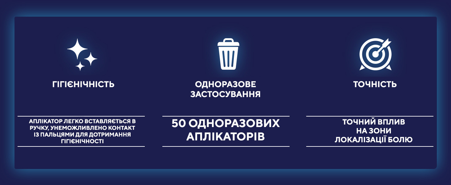 - Гігієнічний аплікатор впливає проблемні ділянки з високою точністю.
