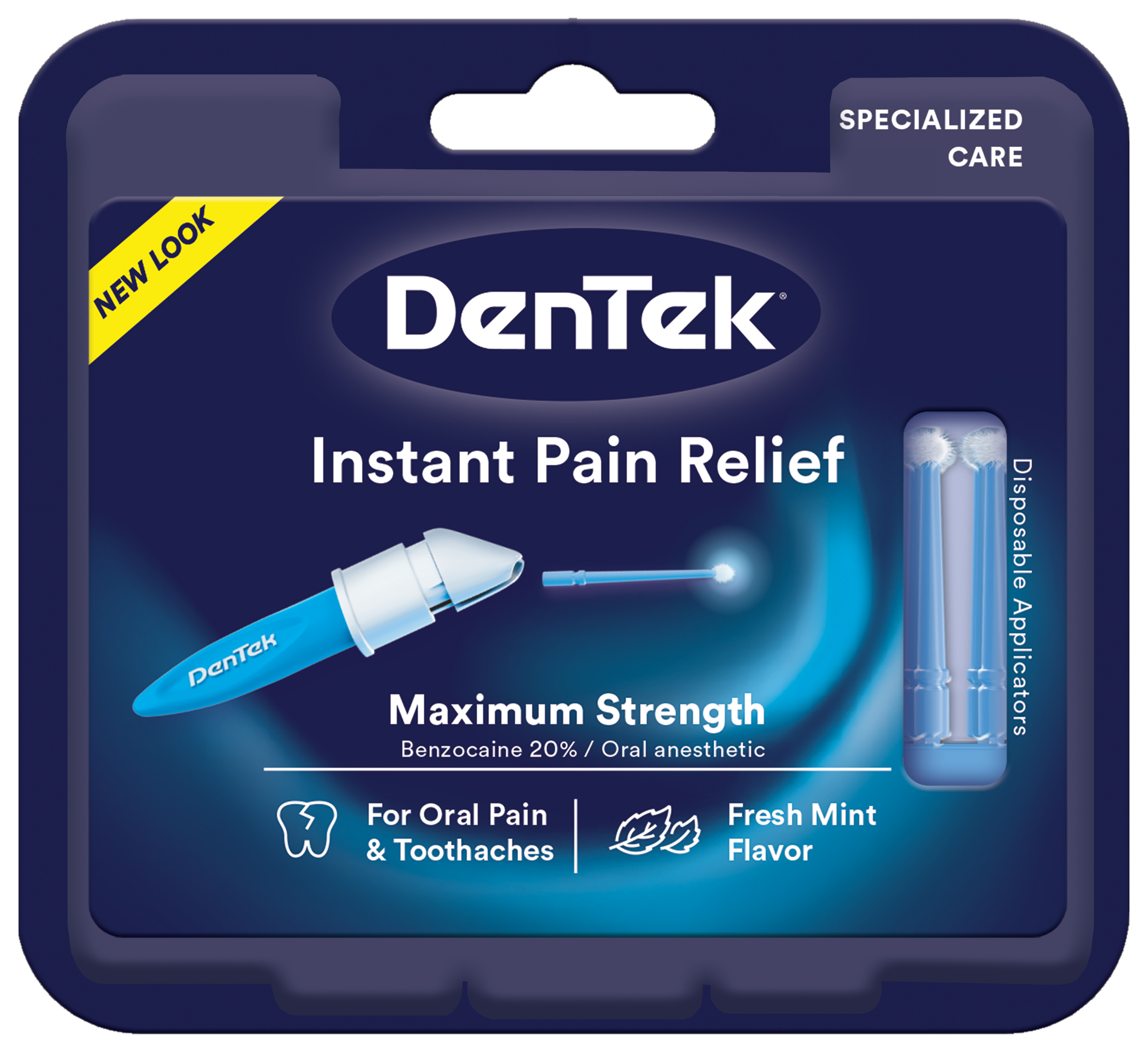 DenTek® Обезболивающее средство мгновенного действия в расширенном наборе обеспечивает быстрое облегчение зубной боли. При помощи аппликаторов одноразового использования средство наносится и действует точно на участки, в которых возникла боль.