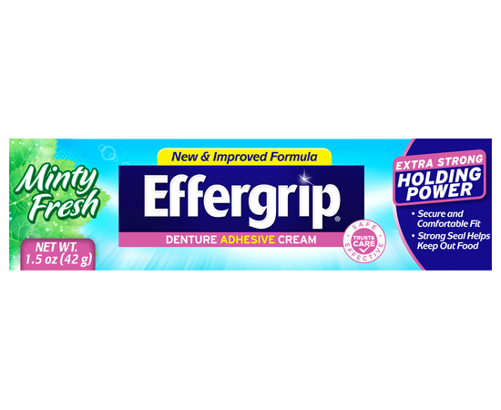 Effergrip не содержит цинка и является надежным кремом для фиксации зубных протезов, который эффективен и безопасен для ежедневного применения.