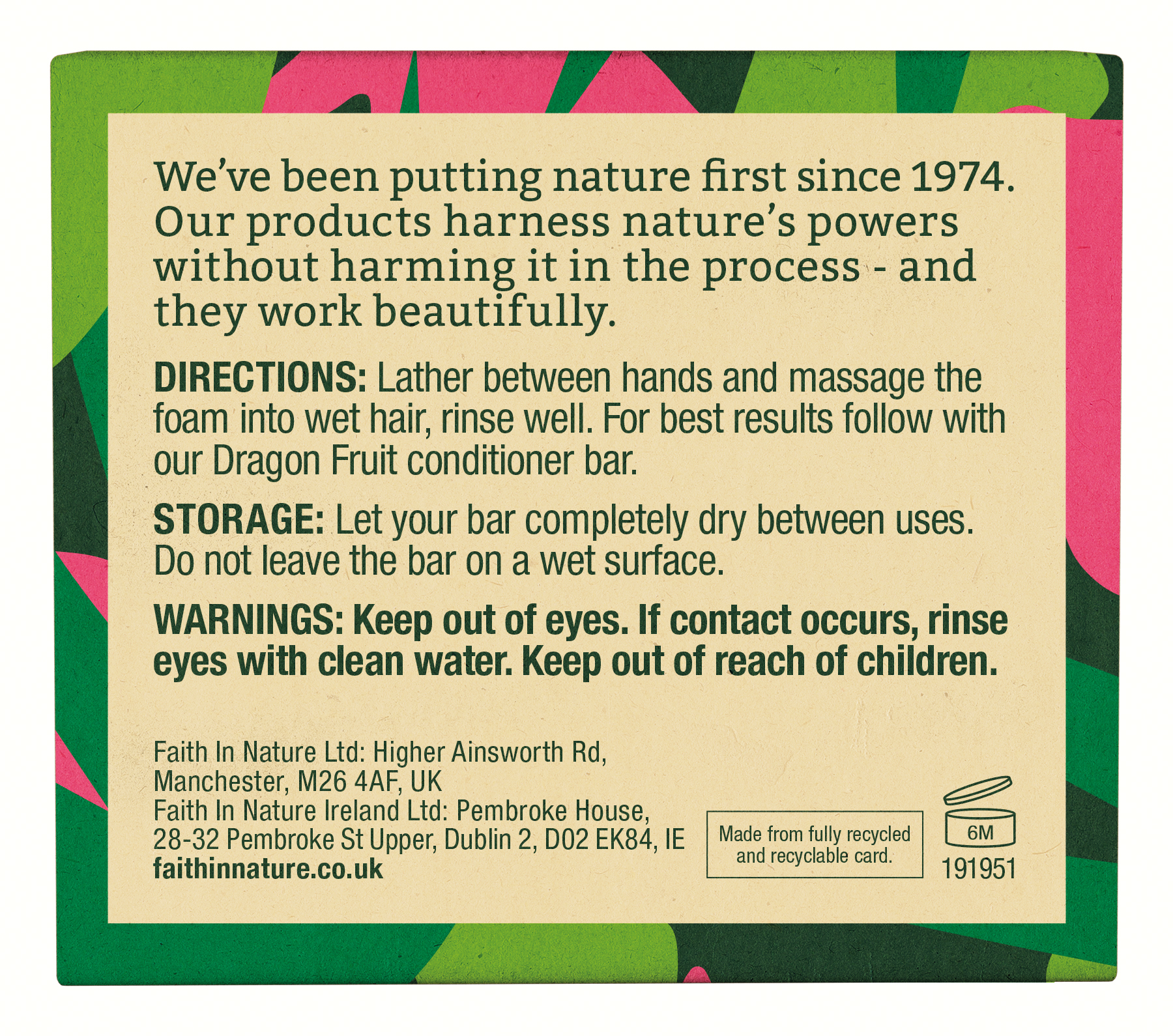 Наш твердый шампунь с фруктом дракона из линейки натуральных твердых шампуней Faith In Nature, все из которых богаты антиоксидантами, витаминами и минералами, одобрены The Vegan Society, не тестируются на животных и изготовлены из ингредиентов высочайшего качества природного происхождения.
