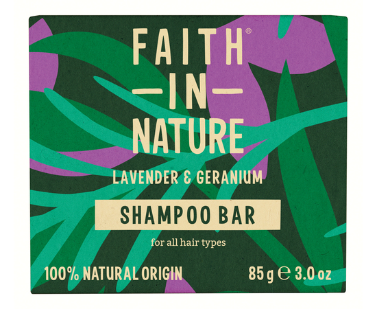Наш твердый шампунь с лавандой и геранью из линейки натуральных твердых шампуней Faith In Nature, все из которых богаты антиоксидантами, витаминами и минералами, одобрены The Vegan Society, не тестируются на животных и изготовлены из ингредиентов высочайшего качества природного происхождения.