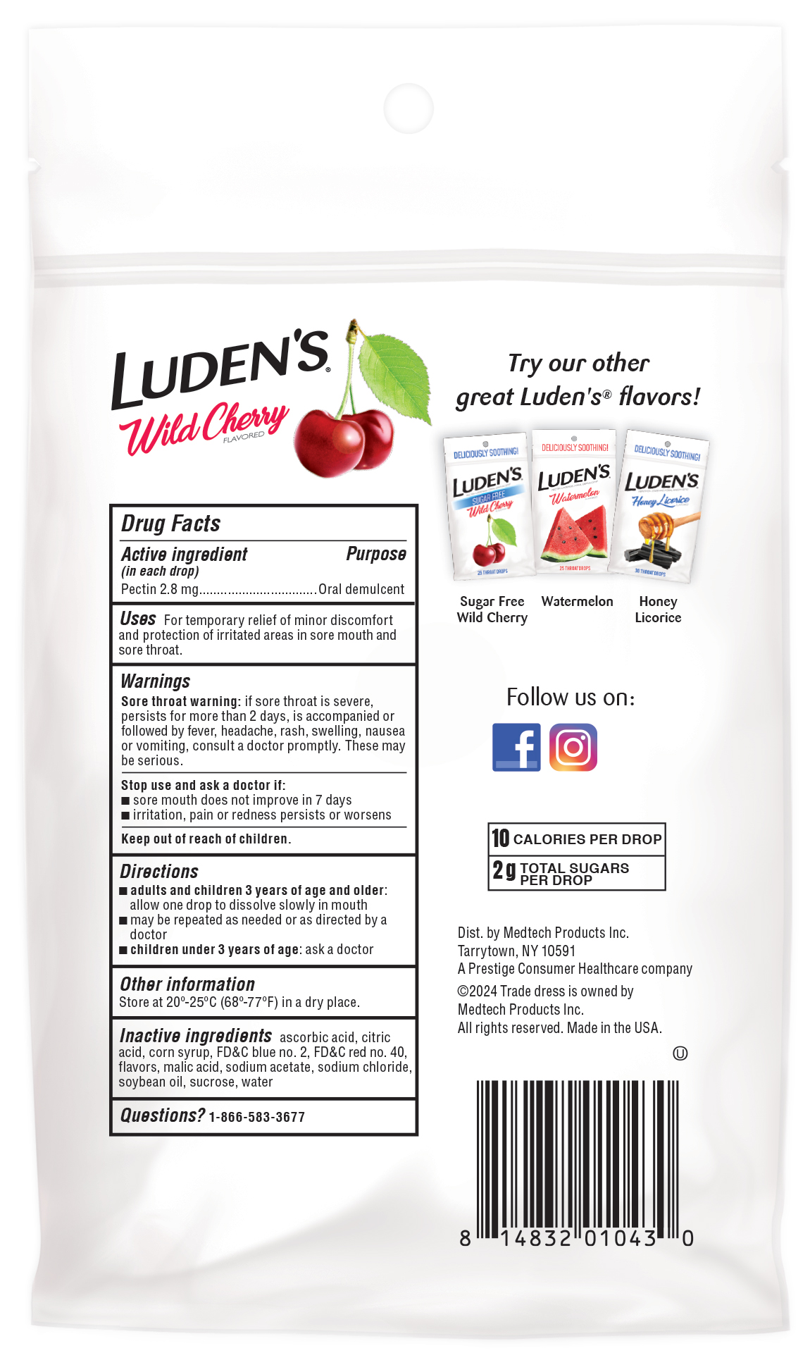 - Леденцы для горла и полости рта Luden's с дикой вишней успокаивают и снимают легкое ежедневное раздражение в горле