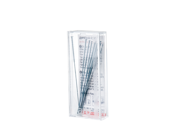 paro® isola long Длинные межзубные щетки используются вручную, нет необходимости в держателе. paro® isola long превосходно очищают фронтальные и жевательные области зубов. Длинный конец ершика может быть легко изогнут в нужную форму для удобства применения.