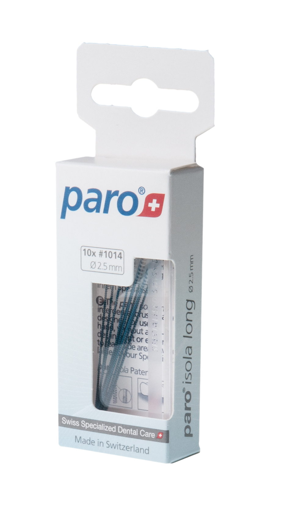 paro® isola long Длинные межзубные щетки используются вручную, нет необходимости в держателе. paro® isola long превосходно очищают фронтальные и жевательные области зубов. Длинный конец ершика может быть легко изогнут в нужную форму для удобства применения.