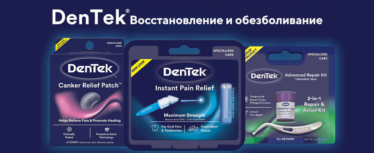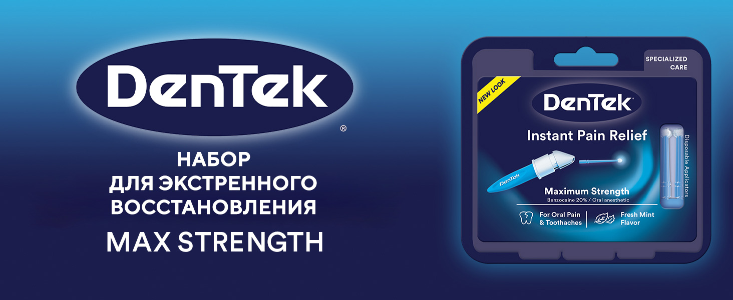DenTek® Обезболивающее средство мгновенного действия в расширенном наборе обеспечивает быстрое облегчение зубной боли. При помощи аппликаторов одноразового использования средство наносится и действует точно на участки, в которых возникла боль.