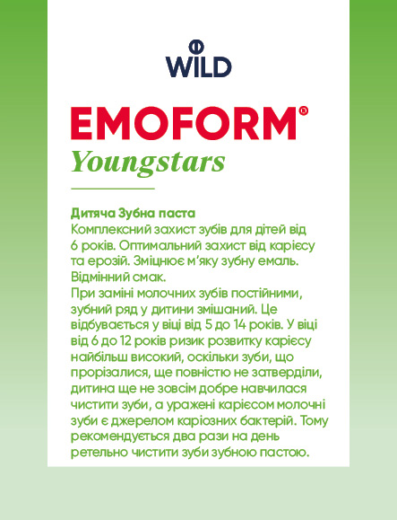 EMOFORM® Youngstars Детская зубная паста со специально разработанной для детских зубов формулой, которая не содержит:
