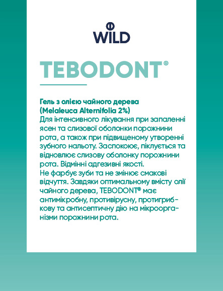 Гель TEBODONT® ингибирует рост и, соответственно, уничтожает микроорганизмы и грибки в полости рта. |
