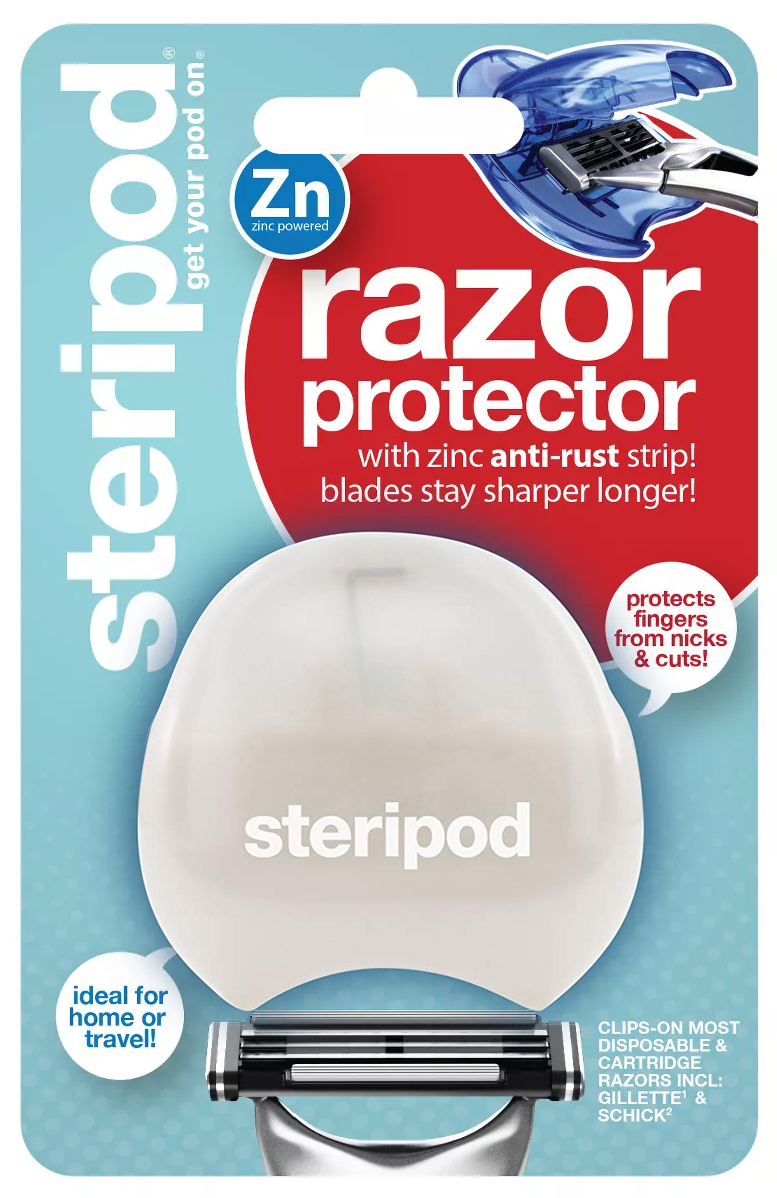 - Steripod Защитный чехол для бритвы с цинковой антикоррозийной полоской, дольше сохраняет Ваши лезвия острыми и защищает пальцы от царапин и порезов