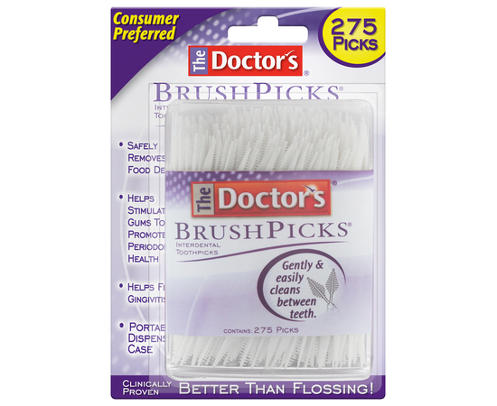 Безопасно удаляйте остатки пищи и боритесь с гингивитом с помощью лучших в мире зубочисток — The Doctor’s® BrushPicks®.