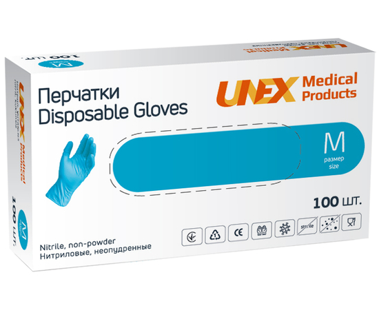 Перчатки нитриловые UNEX Medical, неопудренные, диагностические, синие, размер M, 100 шт. (50 пар)
