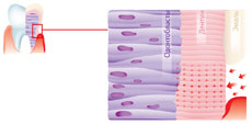 Фторид олова утворює захисний шар на поверхні дентину. Відбувається закупорка дентинних канальців, у результаті передача хворобливого імпульсу на нервові закінчення блокується. Біль запобігли. |