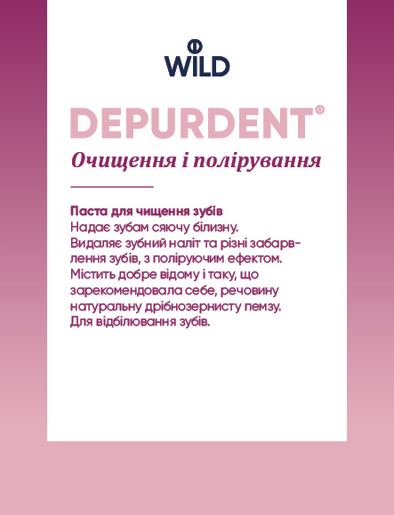 Чищення зубів за допомогою зубної щітки, зубної пасти та засобів очищення міжзубних проміжків є необхідним для поверхневого очищення зубів. Але це не обов'язково захищає від зовнішнього фарбування. Фарбування, поява якого викликано зовнішніми факторами (нікотин, кава, чай, а також інші оборотні фарбування) можна усунути за допомогою пасти для чищення та полірування зубів DEPURDENT®, що має високу чистячу здатність (коефіцієнт абразивності, значення RDA: 195). Багато людей прагнуть забезпечити своїм зубам помітну білизну, сліпучий блиск та природний колір.