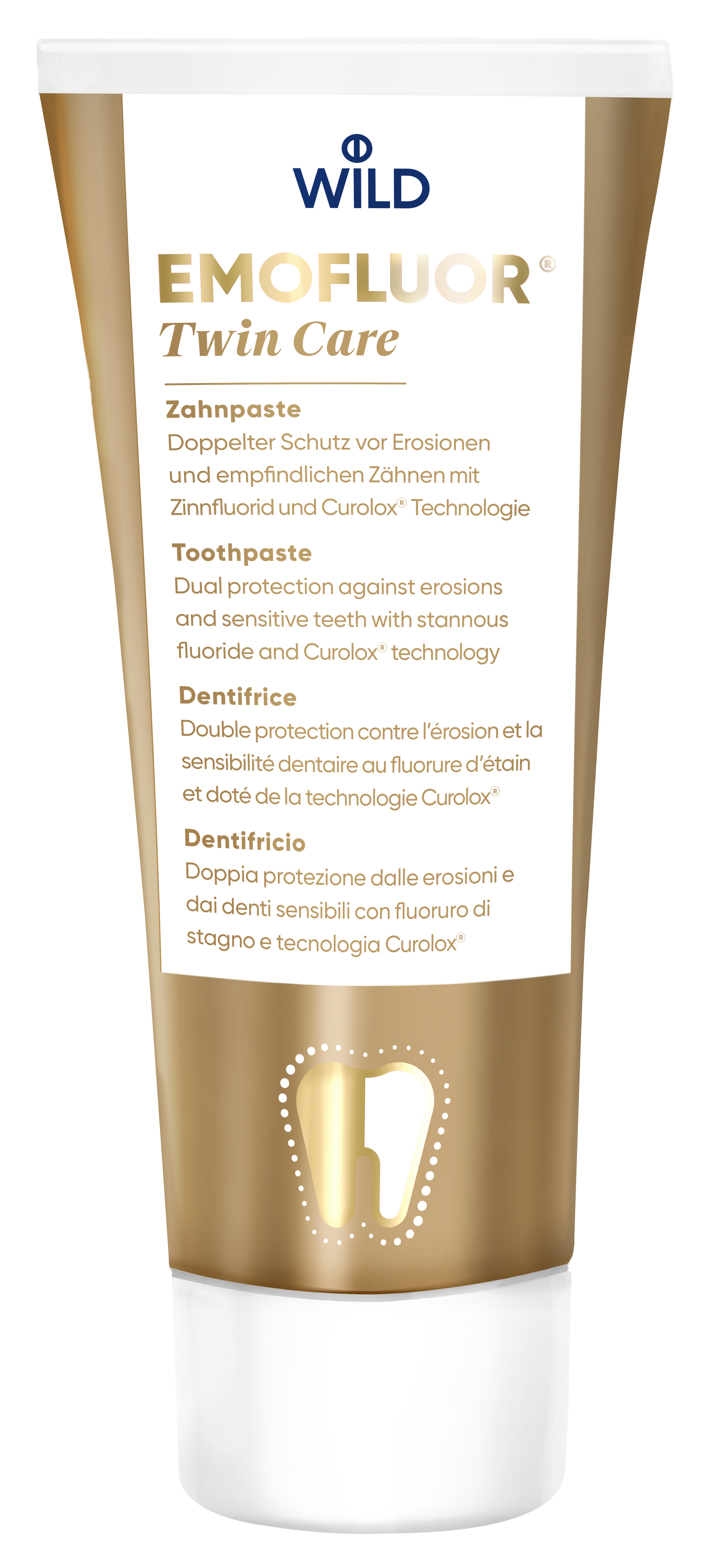 EMOFLUOR® Двойной уход Зубная паста содержит уникальную комбинацию высокоэффективного минерала фторида олова и технологию CUROLOX® (самоорганизующиеся пептиды), удостоенной награды Swiss Technology® Award.