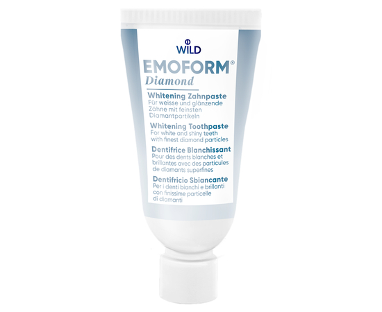 EMOFORM® Диамант Отбеливающая Зубная паста является результатом стоматологических исследований компании Dr. WILD. Она содержит мельчайшие частицы настоящего диаманта, которые мягко очищают и полируют поверхность зубов, при этом не раздражая и не травмируя чувствительные участки. Поэтому EMOFORM® Диамант особенно подходит для достижения естественной белизны зубов у пациентов с повышенной чувствительностью шеек зубов. Результатом является заметно более гладкая и белая поверхность зубов, что в дальнейшем препятствует образованию зубного налета и, как следствие, зубного камня. Фторид, входящий в состав зубной пасты, активно защищает от кариеса и укрепляет эмаль.