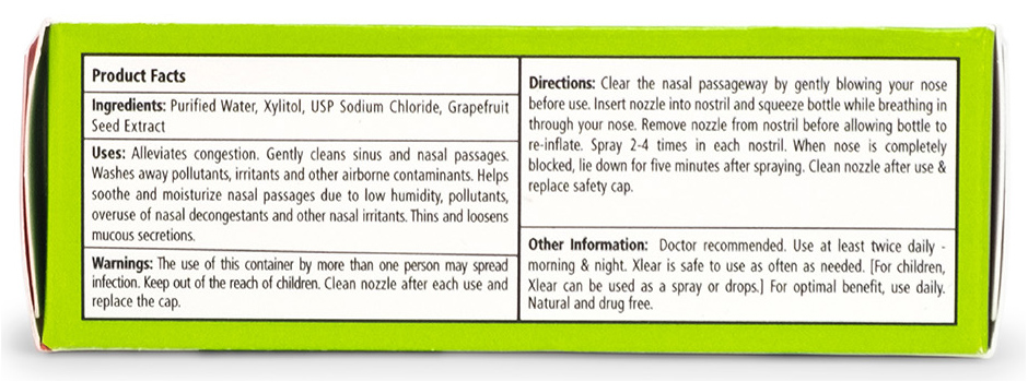 Нормальные солевые назальные спреи могут высушить носовой ход, фактически сделав его более раздраженным и восприимчивым к внешним загрязнениям. Но с добавлением ксилита Xlear Натуральный солевой назальный спрей увлажнит и успокоит Ваши носовые пазухи и носовые ходы.